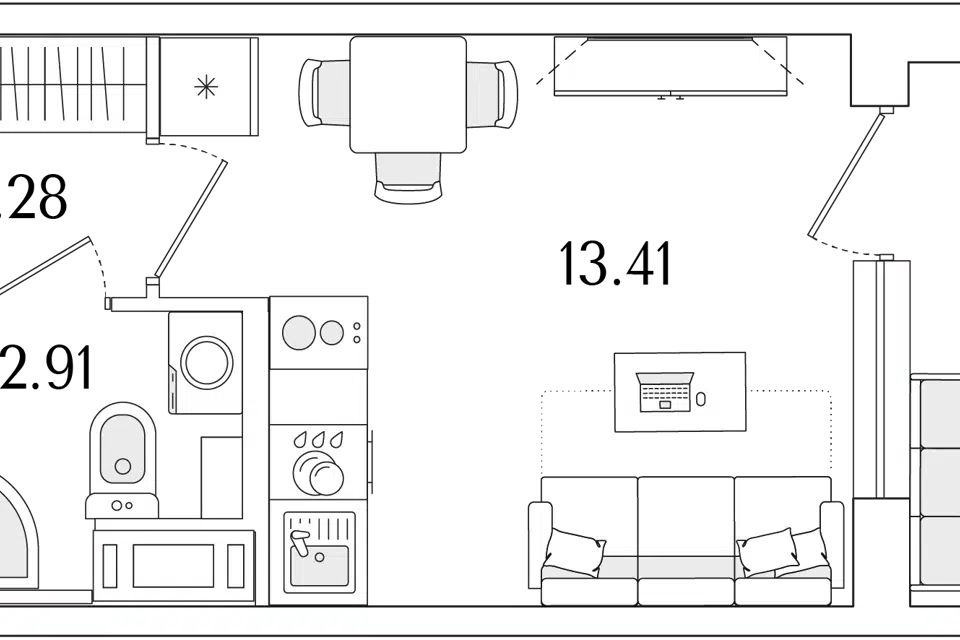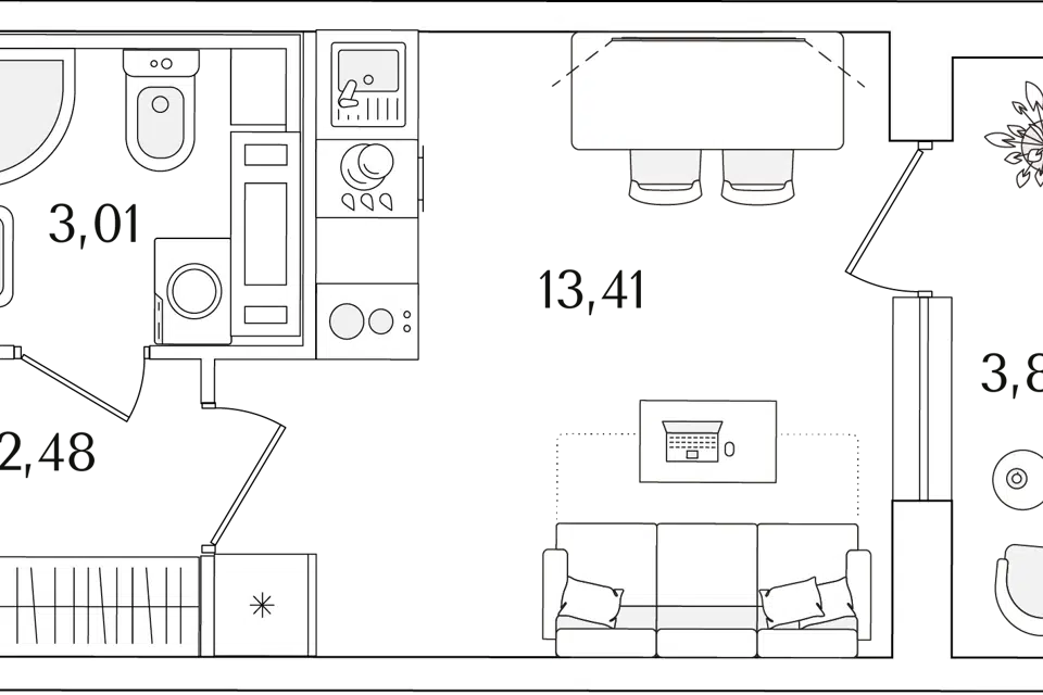 Студия, 23.1 м², 13/23 этаж