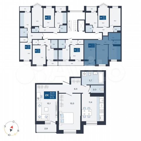 2-комн. кв., 57.5 м², 5/9 этаж