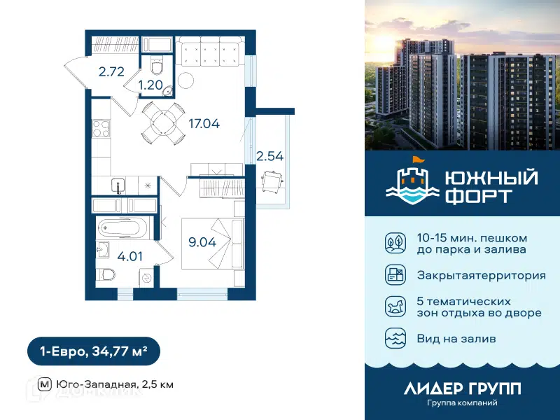1-комн. кв., 38.9 м², 2/9 этаж