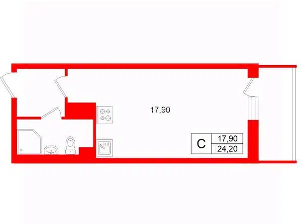 Студия, 25.9 м², 4/20 этаж