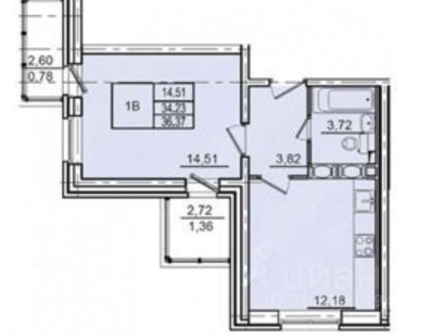 1-комн. кв., 38.4 м², 11/14 этаж