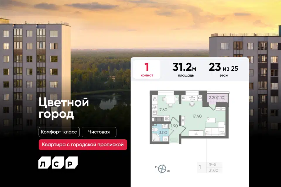 1-комн. кв., 31.2 м², 23/25 этаж