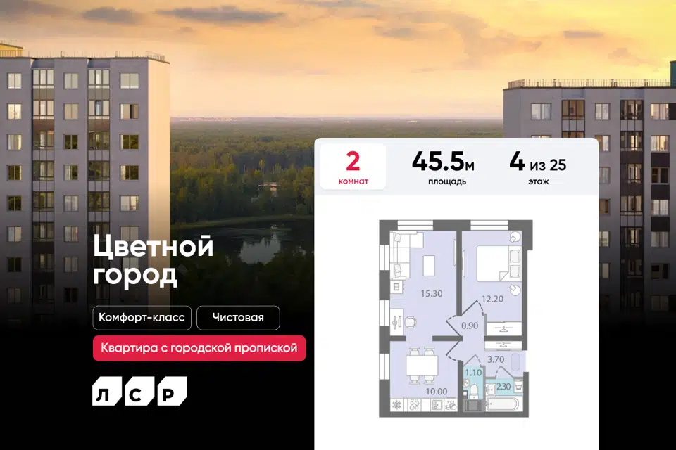 2-комн. кв., 45.5 м², 4/25 этаж