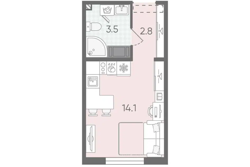 Студия, 25.7 м², 10/13 этаж