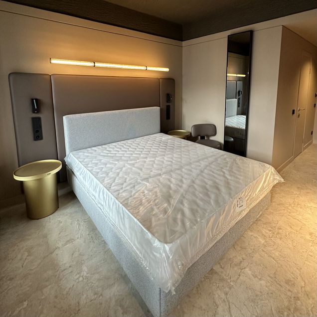+ На первом этаже отеля располагается лаунж-зона, переговорные, снэк-бар, фитнес-клуб, кофейни, двор-патио с ландшафтным дизайном;