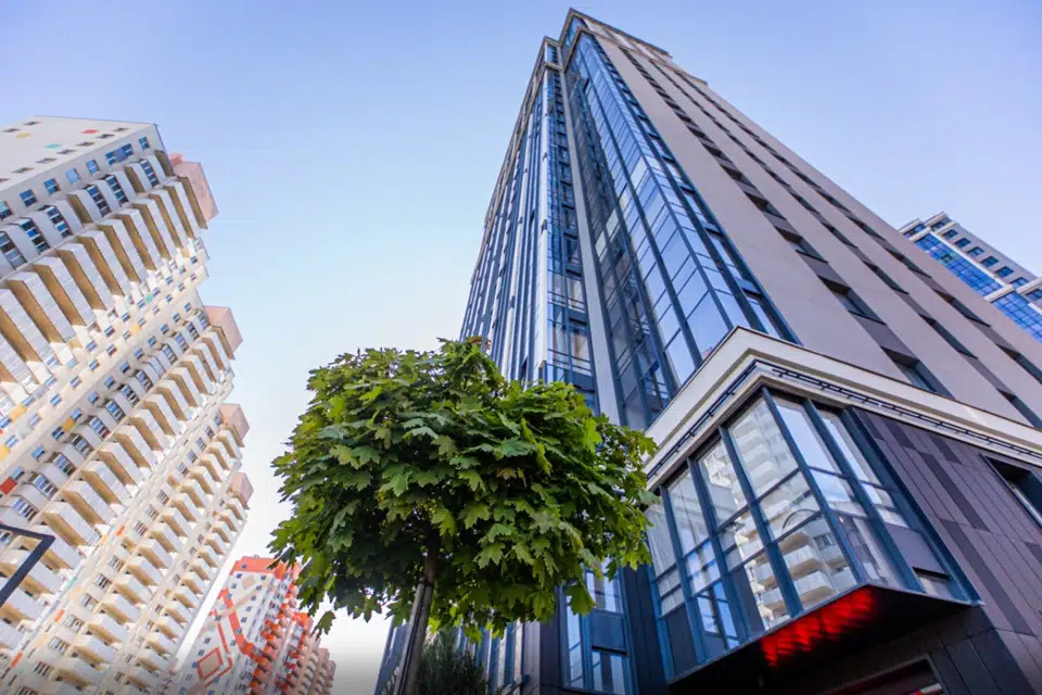 Тип дома: монолитный, с фасадами из керамогранита и минеральной штукатурки.