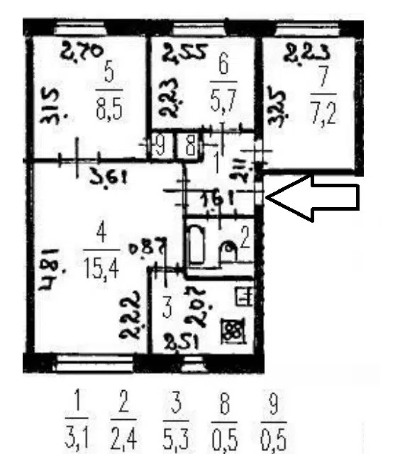 3-комн. кв., 41.5 м², 4/5 этаж