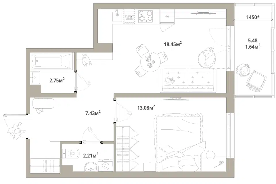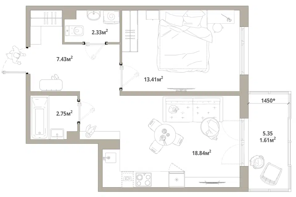 1-комн. кв., 42.3 м², 14/16 этаж