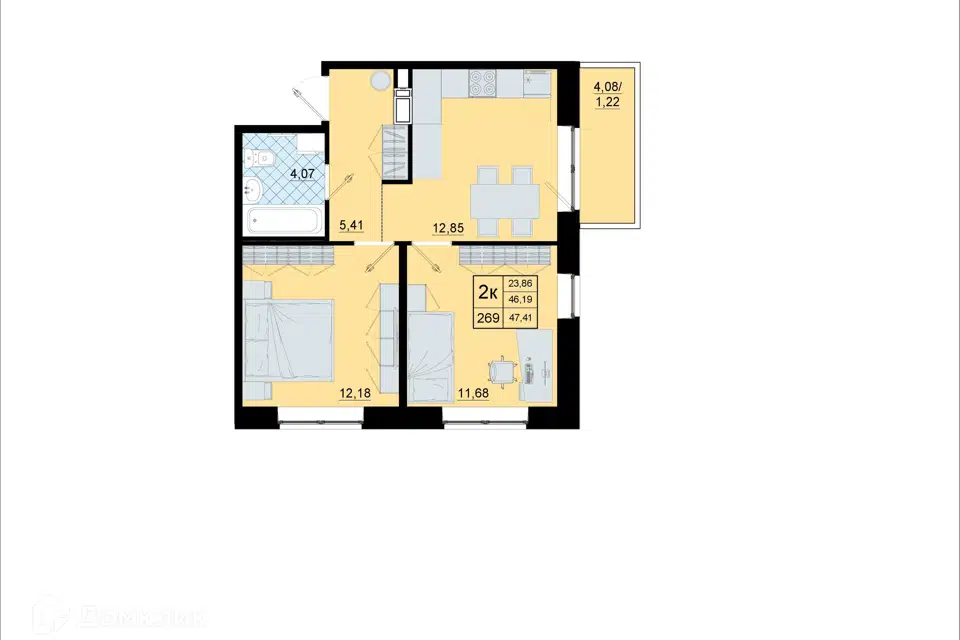 2-комн. кв., 47.41 м², 3/10 этаж