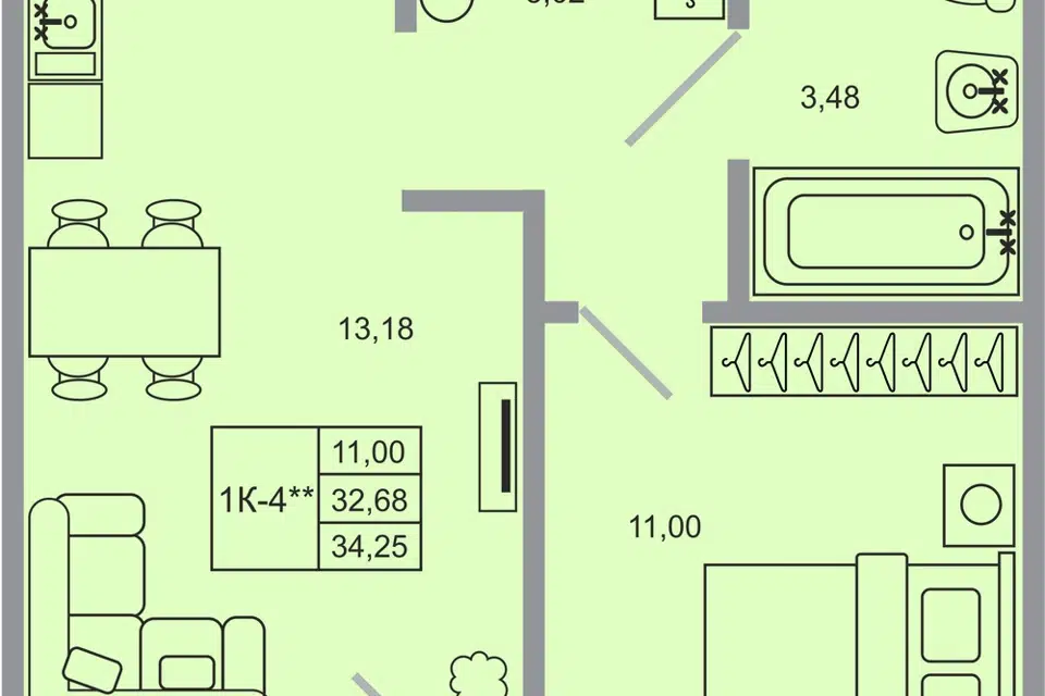 Студия, 33 м², 11/14 этаж