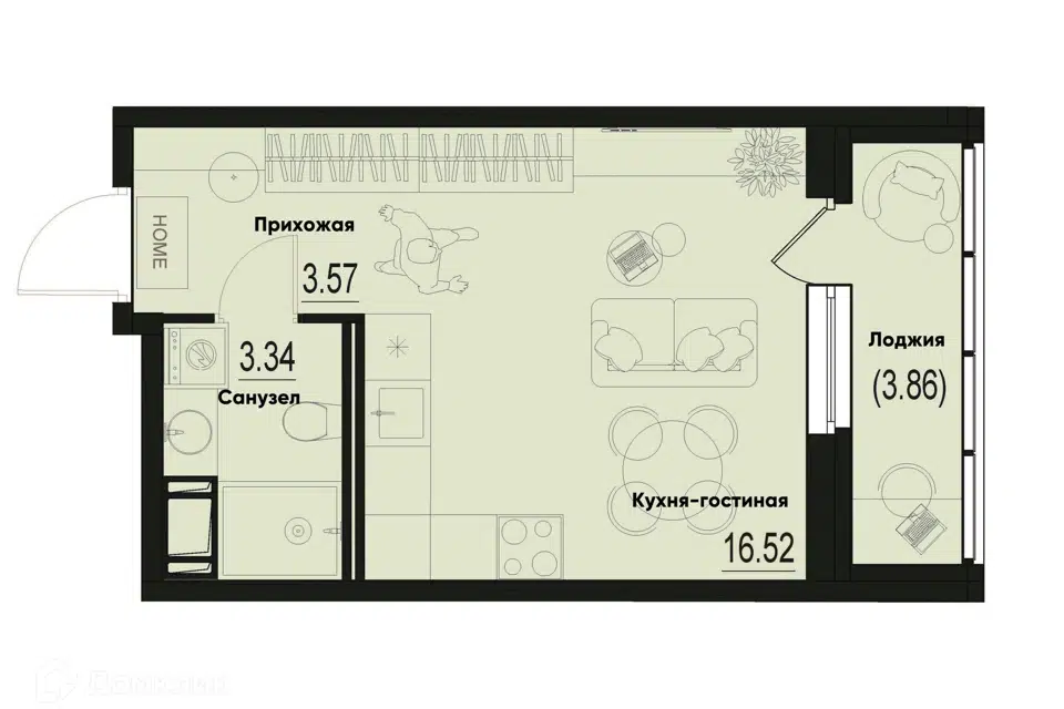 Студия, 24.1 м², 4/16 этаж