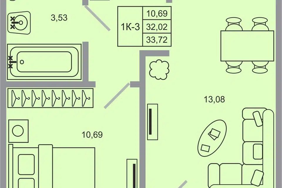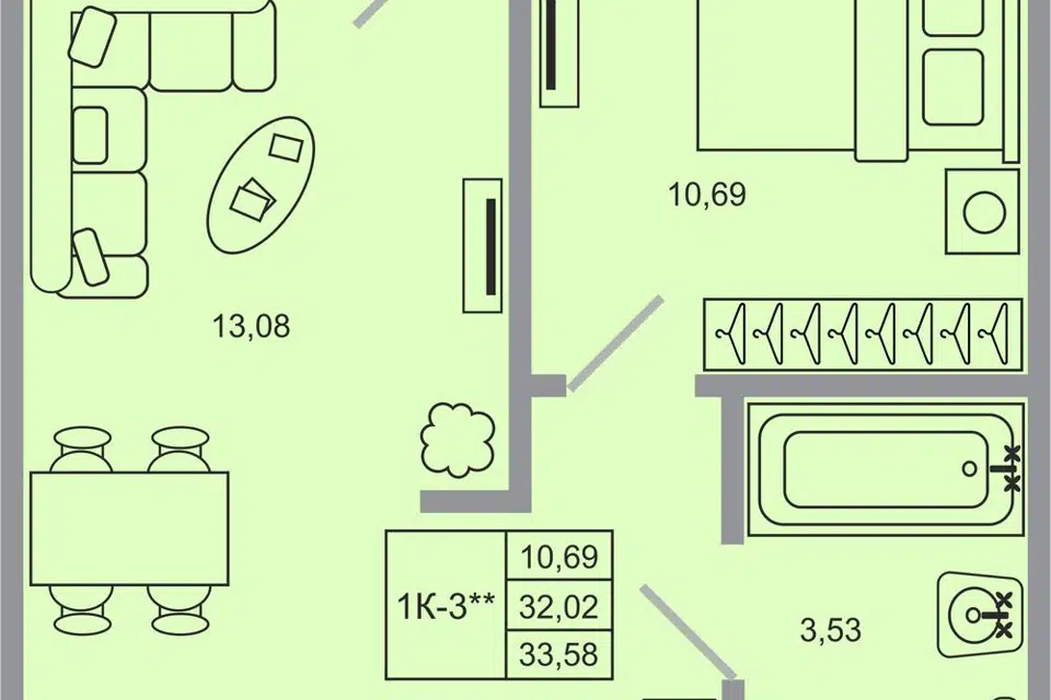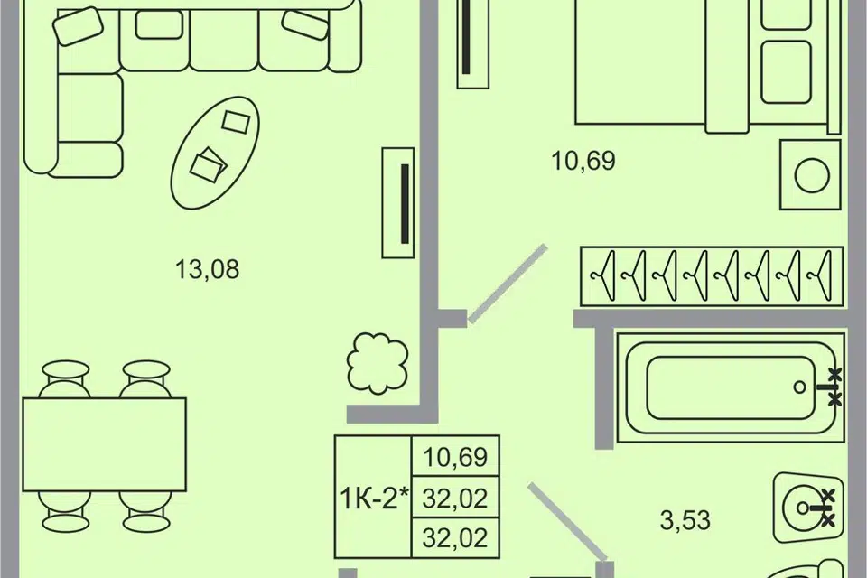 1-комн. кв., 32.02 м², 1/20 этаж