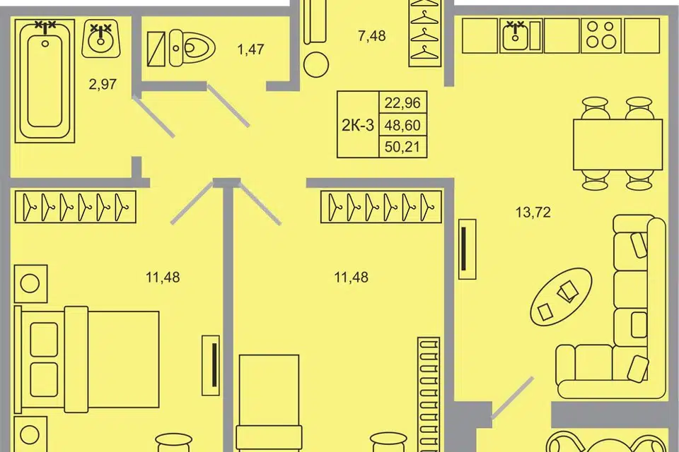 2-комн. кв., 50.21 м², 9/20 этаж