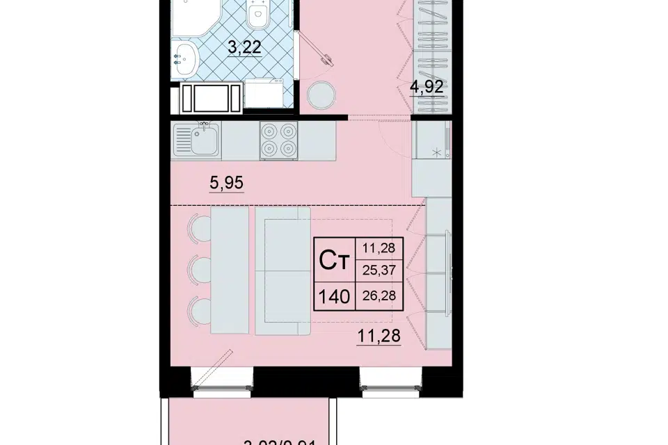 1-комн. кв., 26.28 м², 3/10 этаж