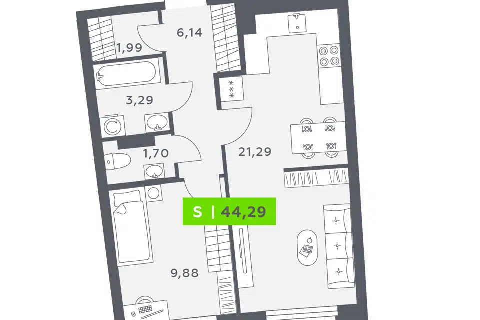 1-комн. кв., 44.29 м², 11/20 этаж