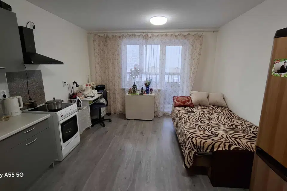 Продам Студию в Спб, по адресу проспект Большевиков дом 79, метро Дыбенко, общая площадь 16 м2, сделан евро ремонт, заменена электрика, ламинат, стеклопакеты, санузел совмещенный, ванная, кафель, унитаз, раковина, кухонный гарнитур, с мойкой и вытяжкой, фото реальные, есть прописка. Можно в ипотеку.