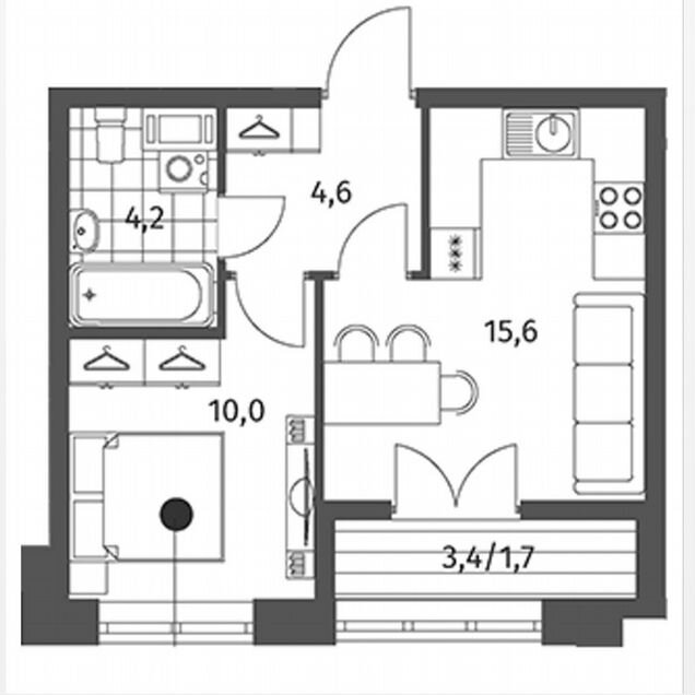 1-комн. кв., 34.2 м², 2/9 этаж