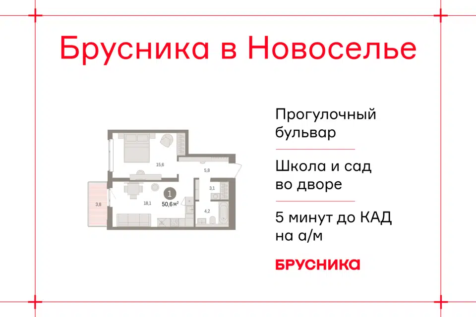 1-комн. кв., 50.56 м², 7/9 этаж