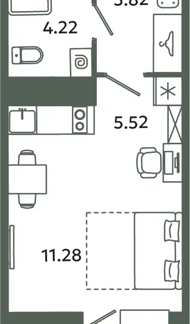 Студия, 22.8 м², 11/16 этаж