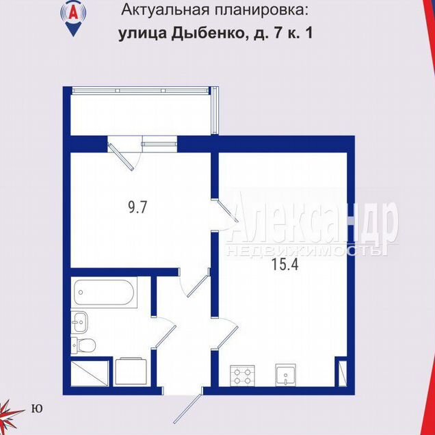 1-комн. кв., 41.8 м², 15/15 этаж