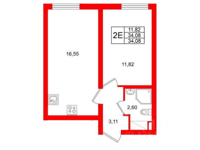 1-комн. кв., 34.08 м², 10/23 этаж