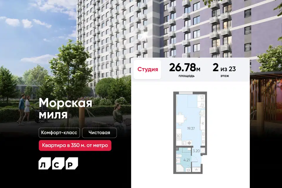 Студия, 26.78 м², 2/23 этаж
