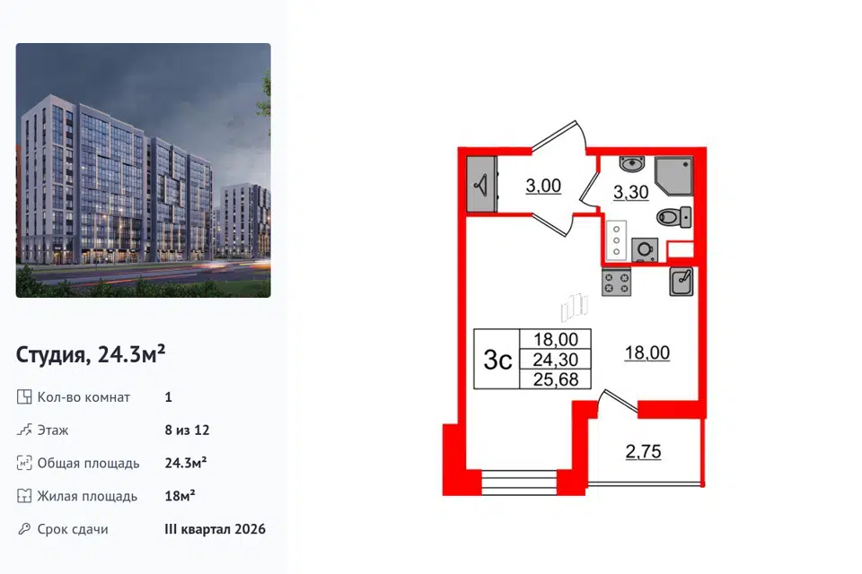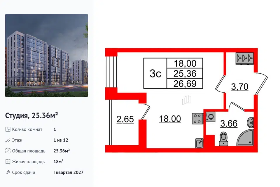 4 из 5 хозяев не хотят сдавать квартиру людям с питомцами, но мы знаем, как грамотно их переубеждатьСтудия, 25.36 м², 1/1 этаж