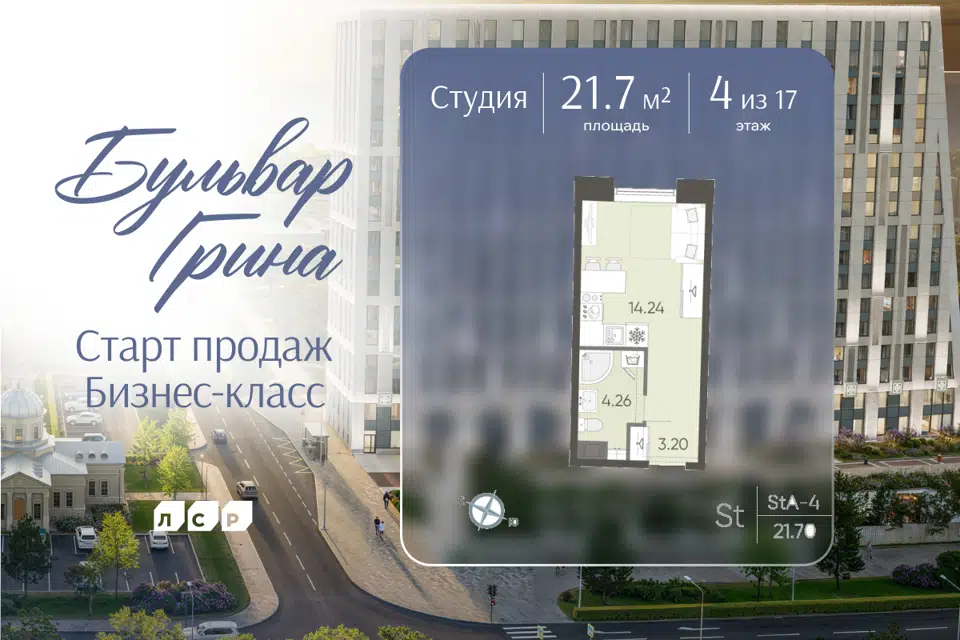 Студия, 24.9 м², 4/20 этаж