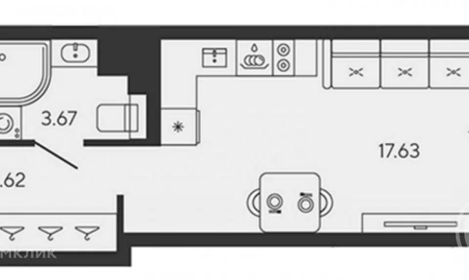 Студия, 21 м², 11/19 этаж