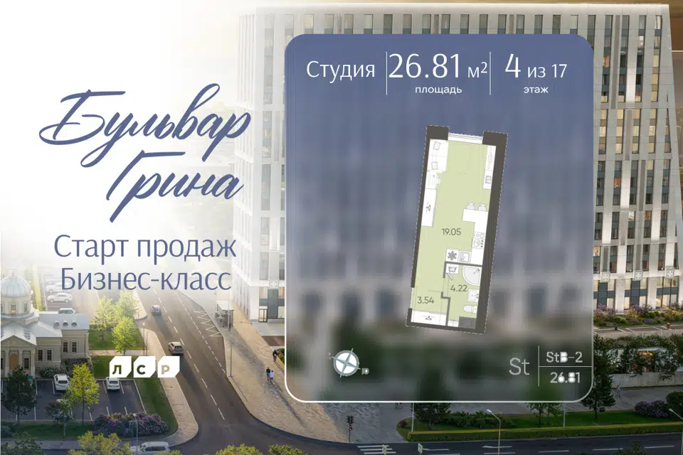 Студия, 26.2 м², 14/19 этаж