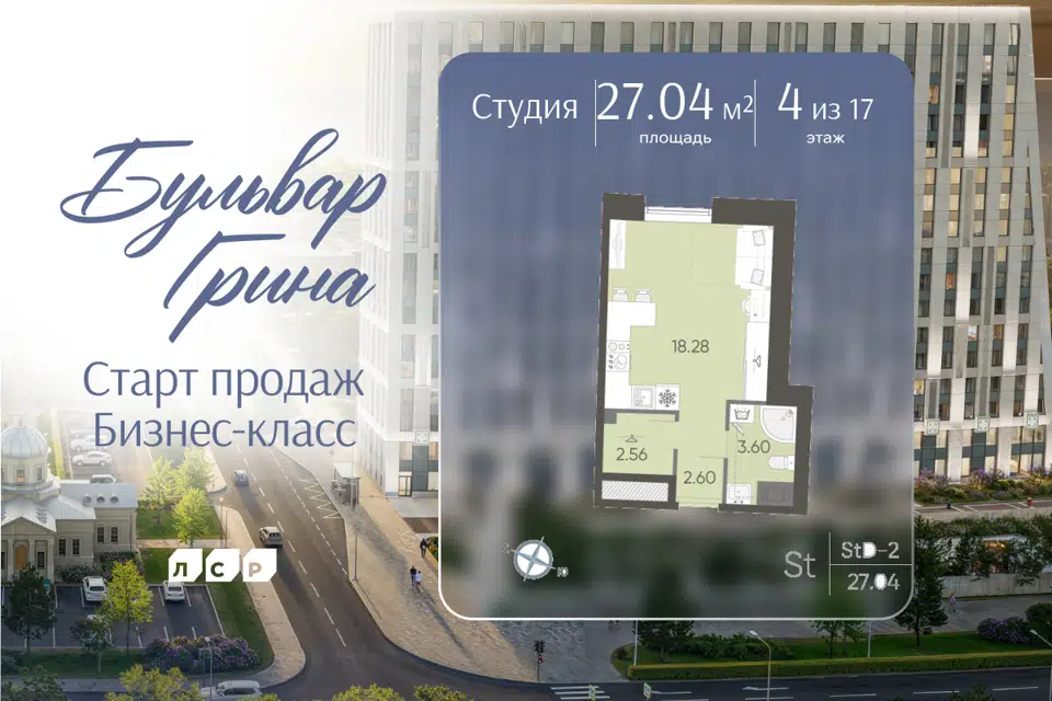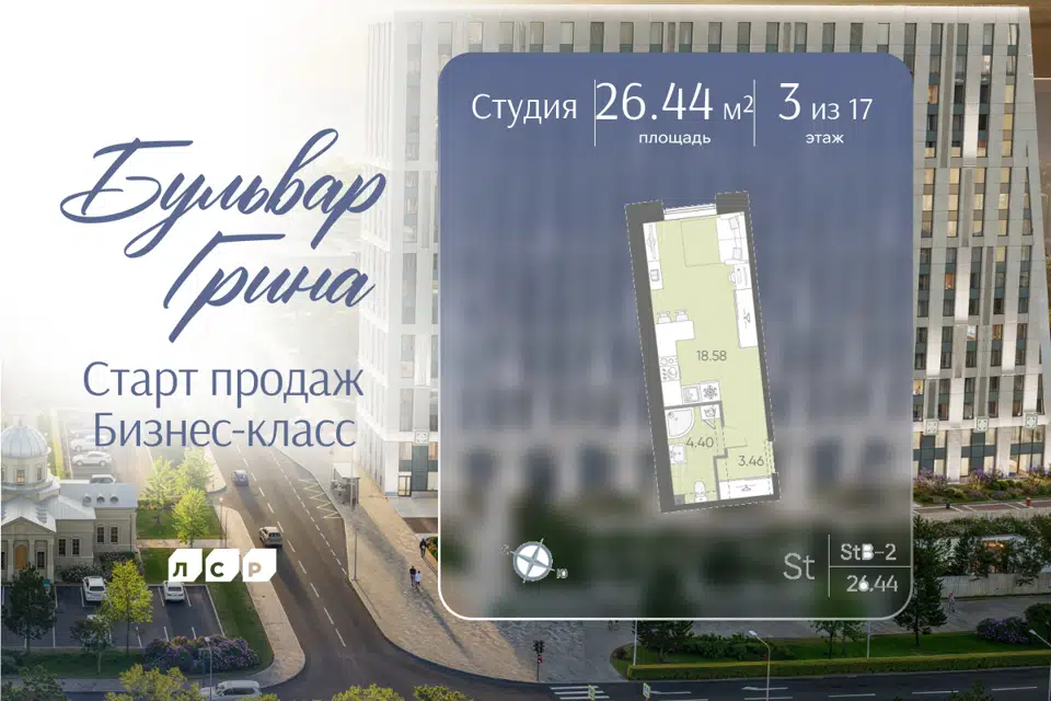 Студия, 26 м², 3/18 этаж