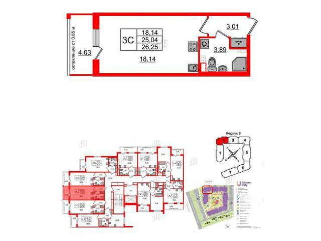 Студия, 26.25 м², 3/4 этаж
