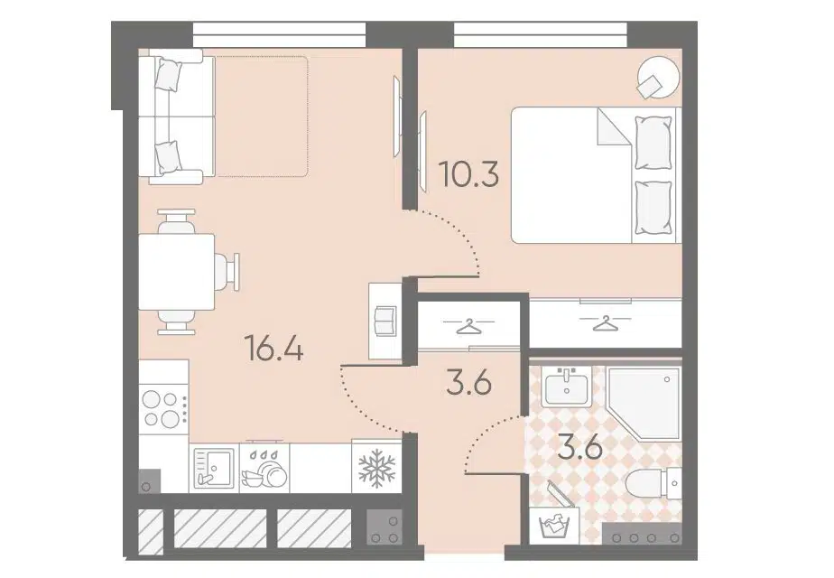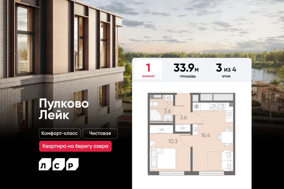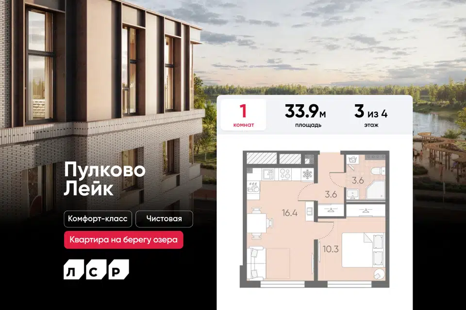 1-комн. кв., 33.9 м², 3/4 этаж