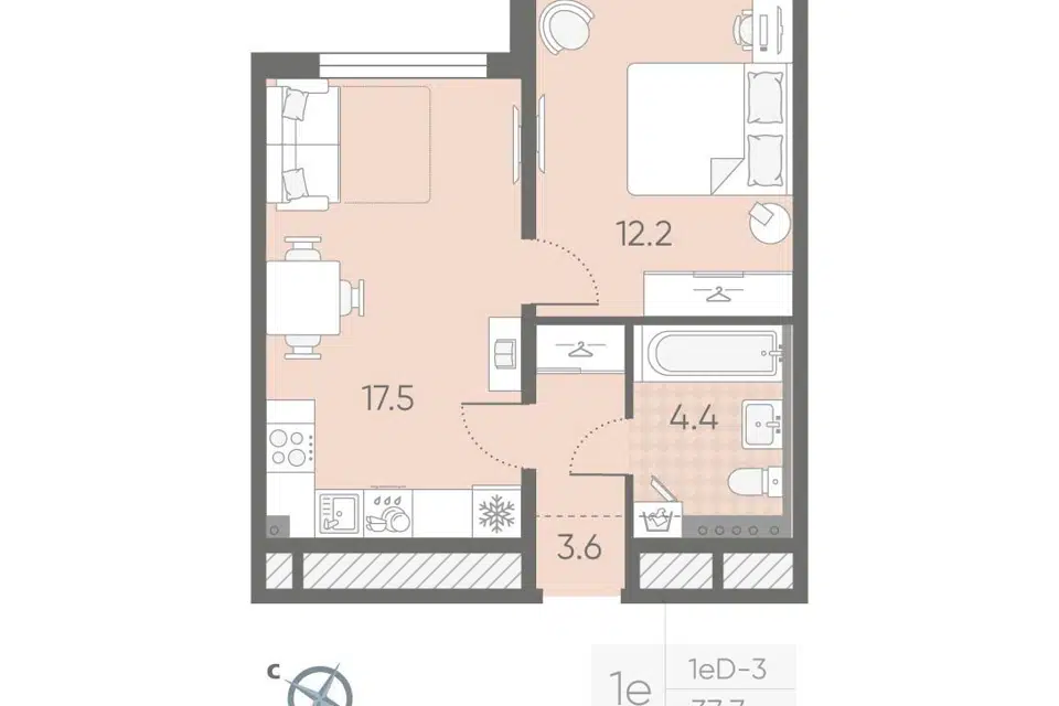 1-комн. кв., 37.7 м², 3/5 этаж
