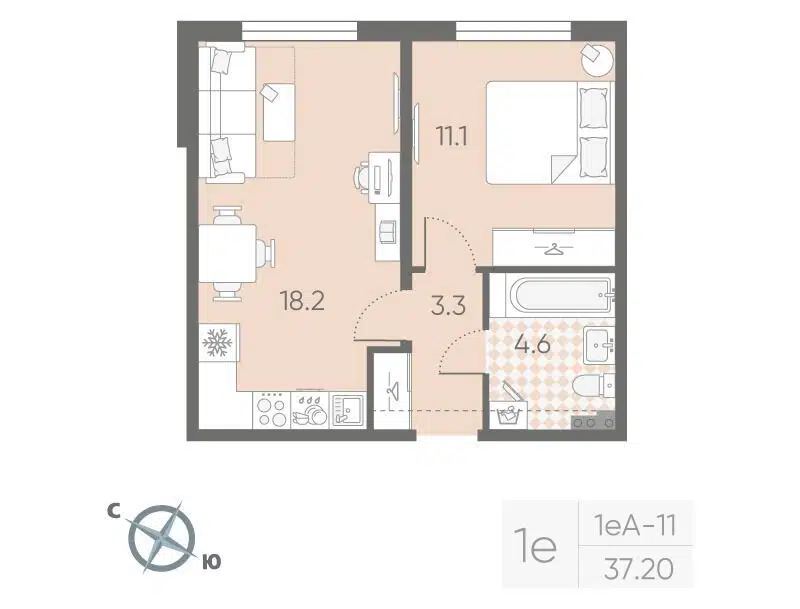 1-комн. кв., 37.2 м², 2/4 этаж