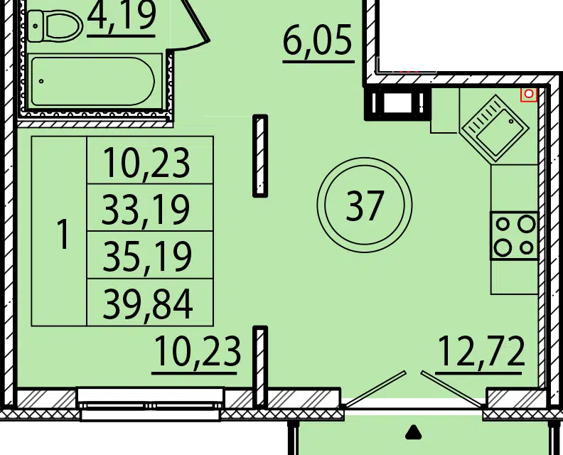 1-комн. кв., 33.19 м², 3/4 этаж