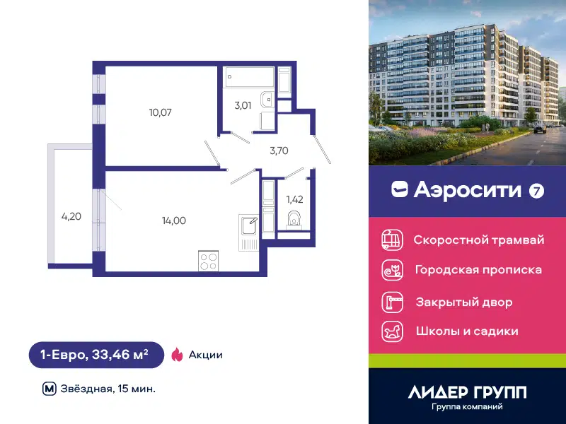 1-комн. кв., 33.46 м², 12/12 этаж