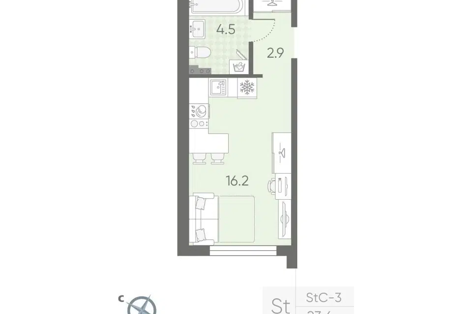 Студия, 24.1 м², 2/4 этаж