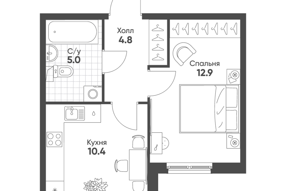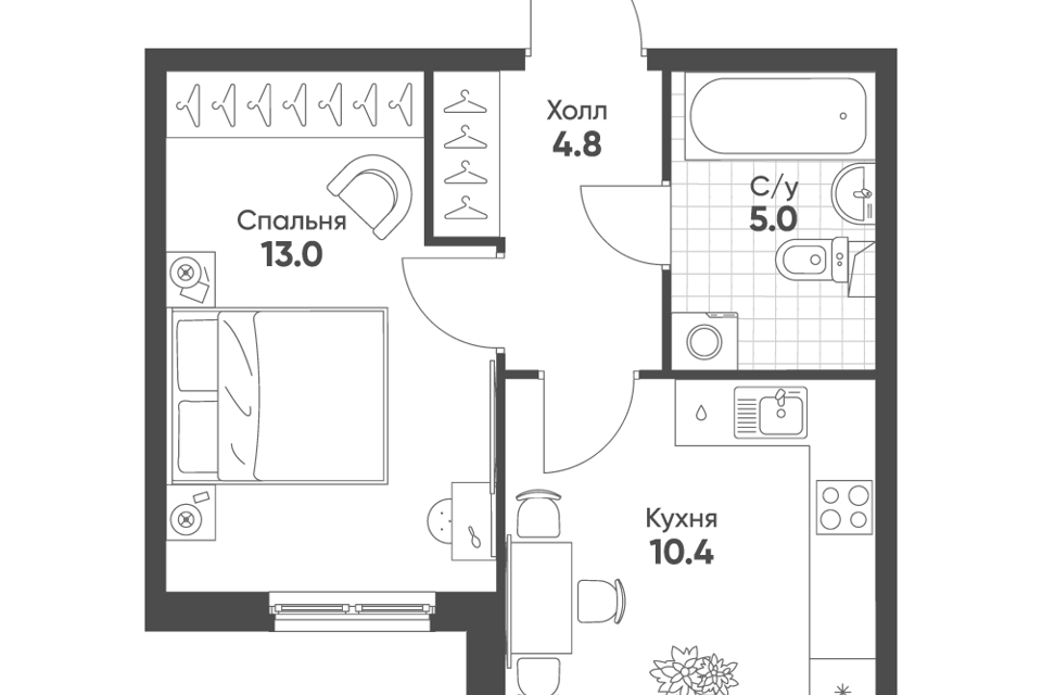 1-комн. кв., 41.8 м², 8/9 этаж