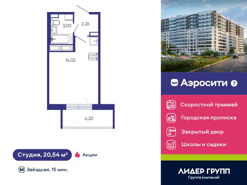 Студия, 23.6 м², 20/25 этаж