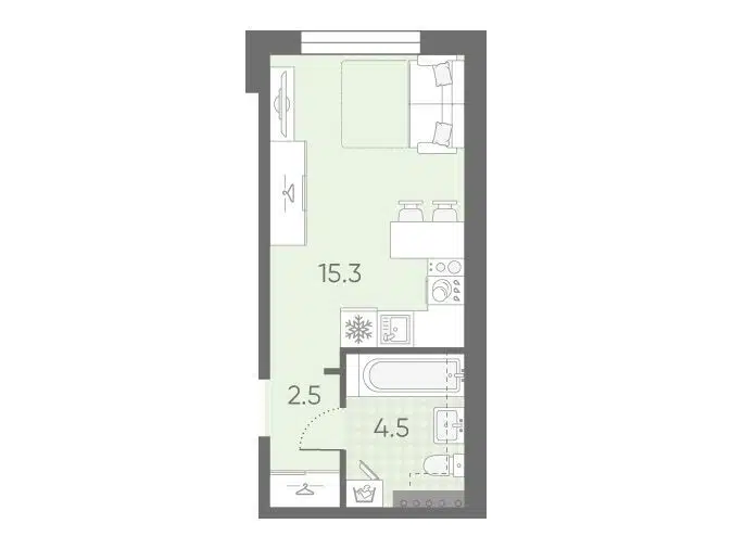Студия, 24.81 м², 1/1 этаж
