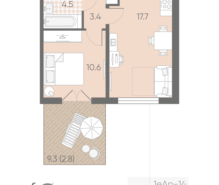 1-комн. кв., 30.9 м², 1/9 этаж