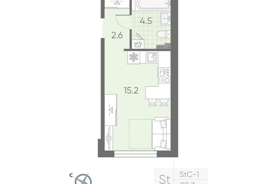 Студия, 22.7 м², 3/4 этаж