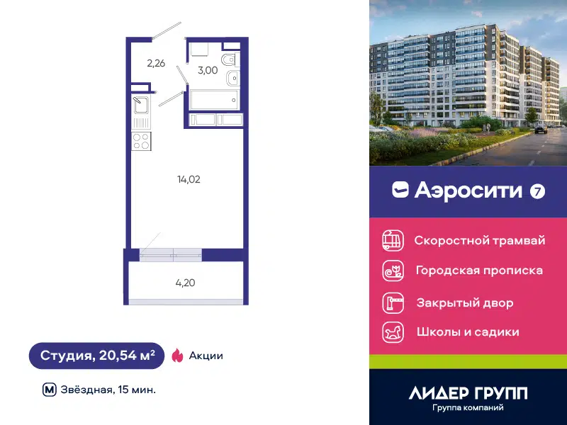 Студия, 20.54 м², 5/12 этаж