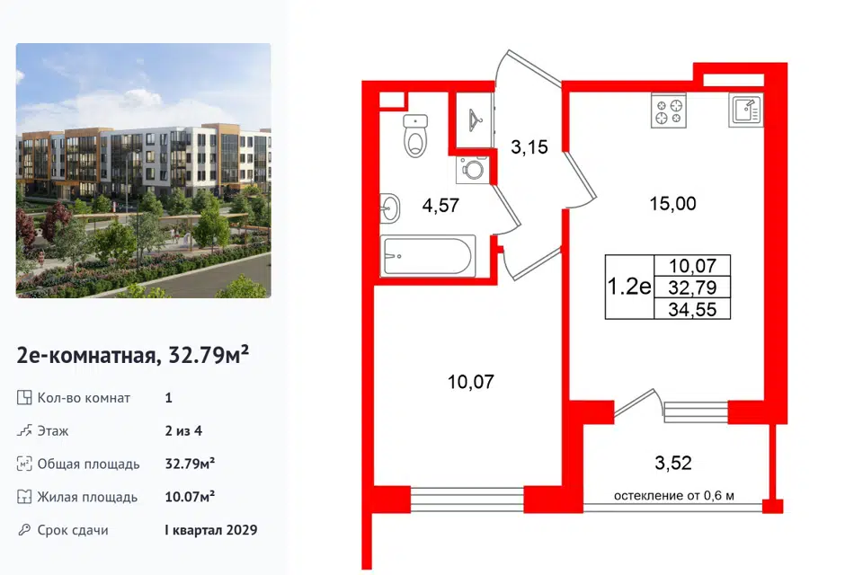 1-комн. кв., 29.79 м², 4/1 этаж