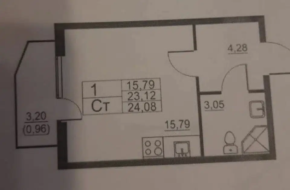 Студия, 23.2 м², 3/4 этаж
