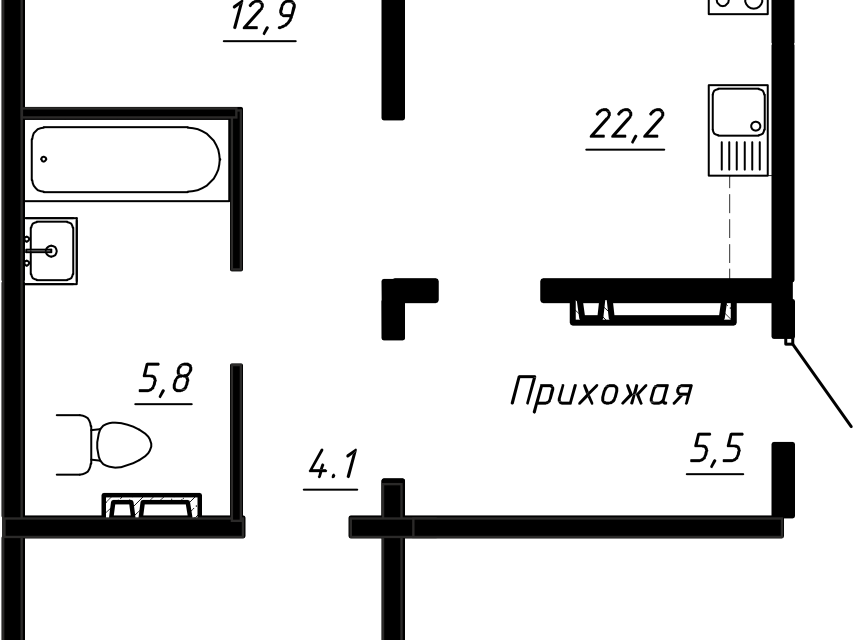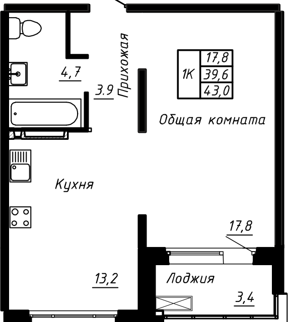 1-комн. кв., 43 м², 9/17 этаж