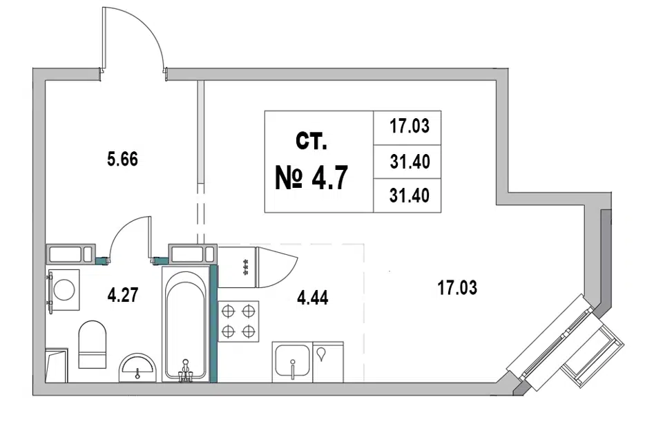 Студия, 31.4 м², 1/8 этаж
