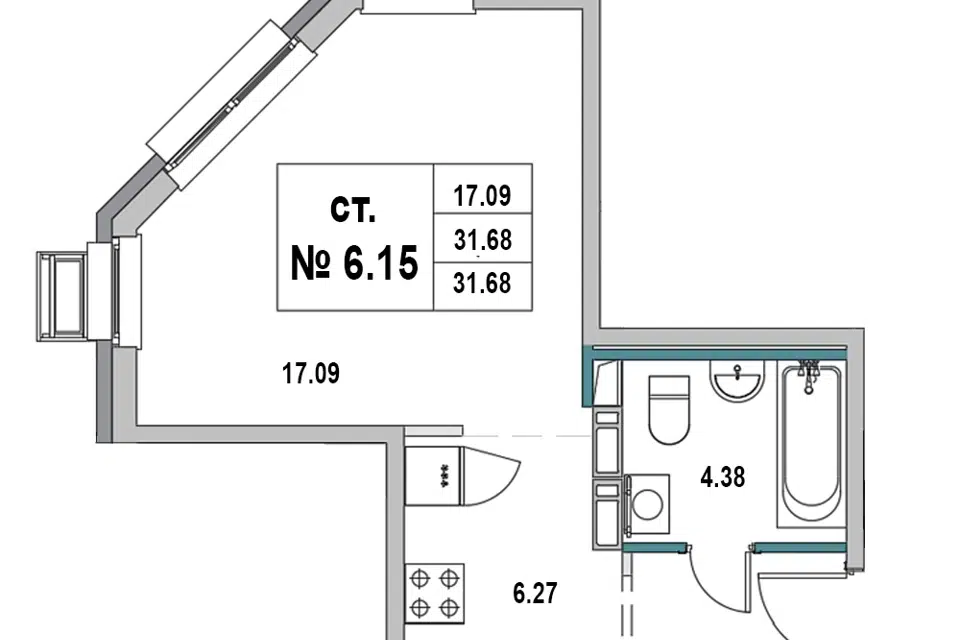 Студия, 31.68 м², 2/8 этаж