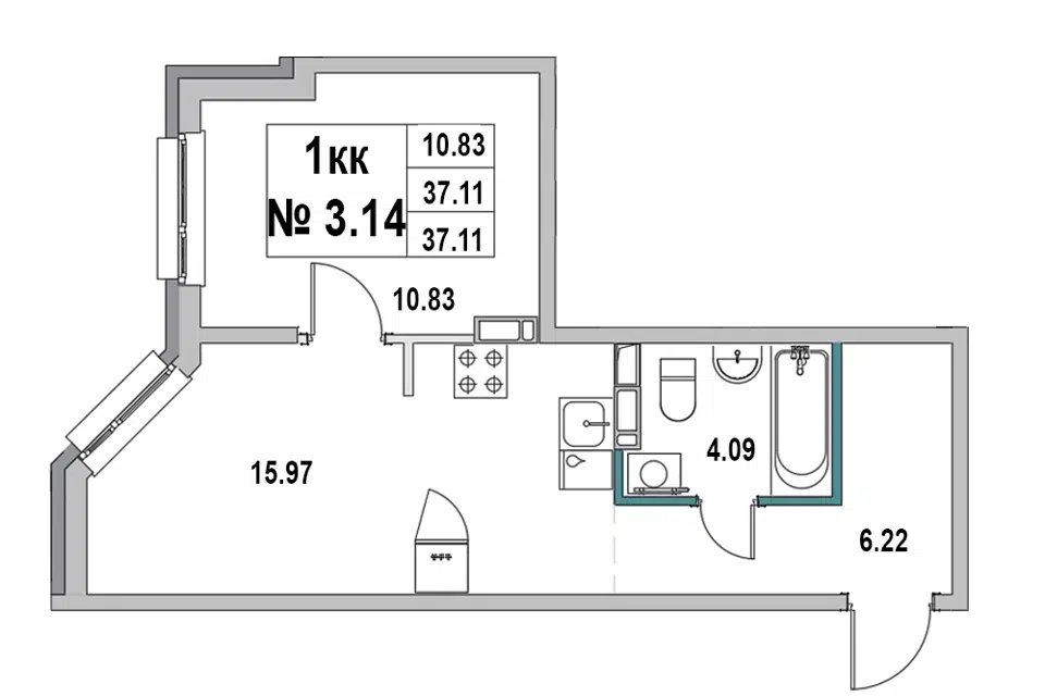 1-комн. кв., 37.11 м², 2/8 этаж